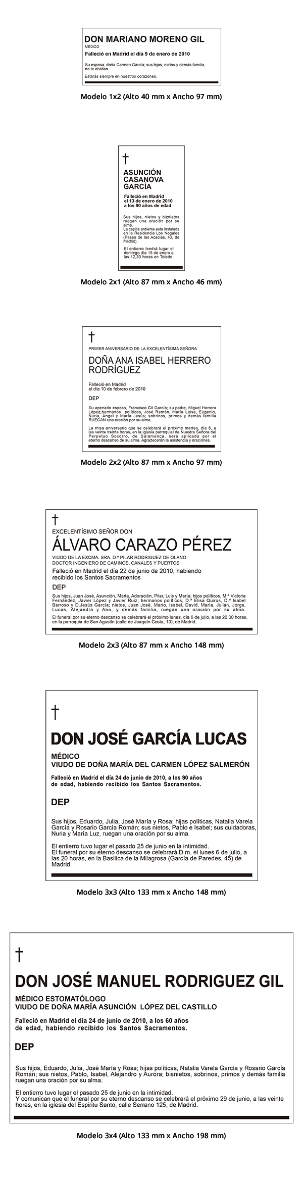 Las imágenes comparativas de los modelos de esquelas de EL PAÍS, que le mostramos a continuación están ligeramente reducidas, manteniendo la proporcionalidad para facilitar su distinción unas de otras.